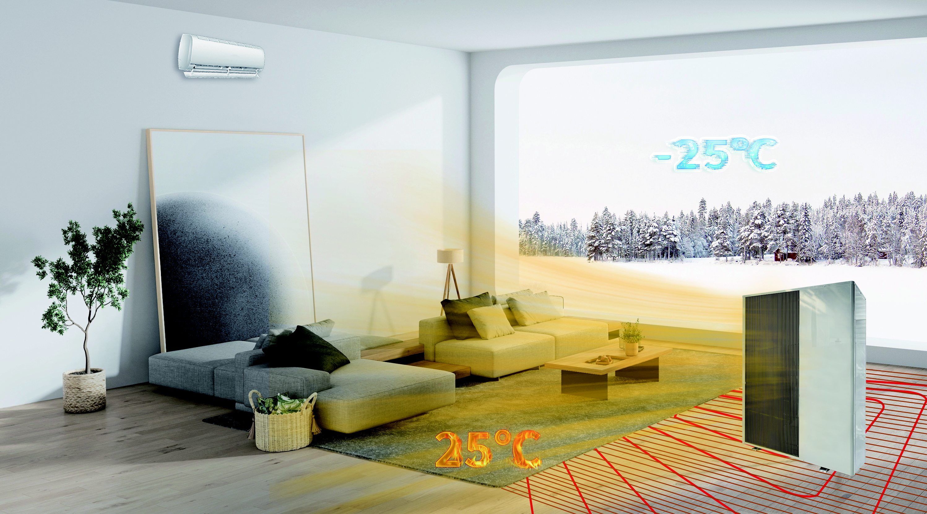 - KOLANT DC inverter multifunctional heat pump provide Heating, Cooling + Domestic Hot Water in one solution.