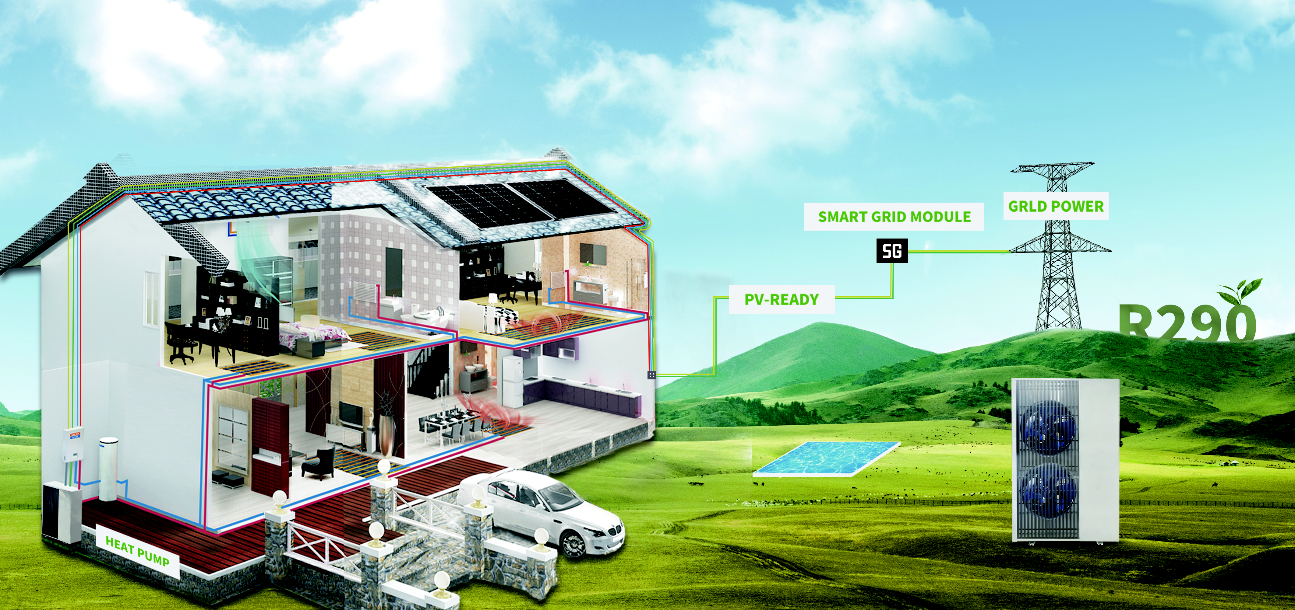 Built inside Special R290 leakage sensor to give warning at any r290 leakage to protect the user and heat pump.